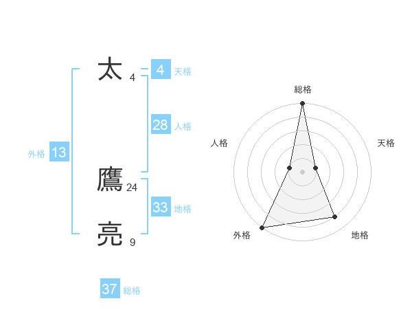 太 鷹亮さんの総格は37画の5点!