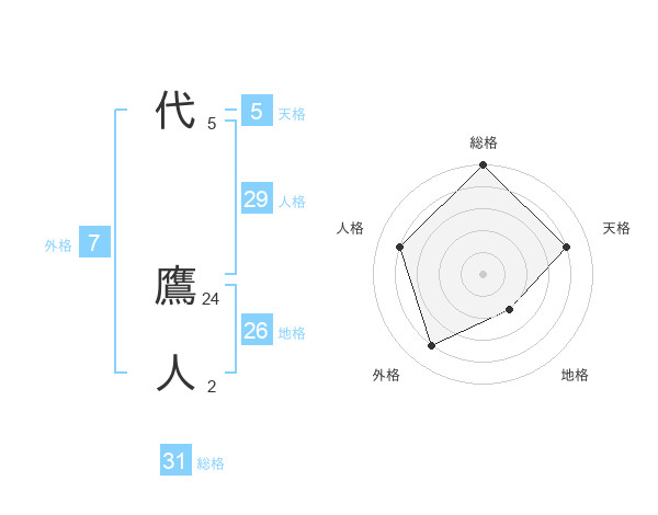 代 鷹人さんの総格は31画の5点!