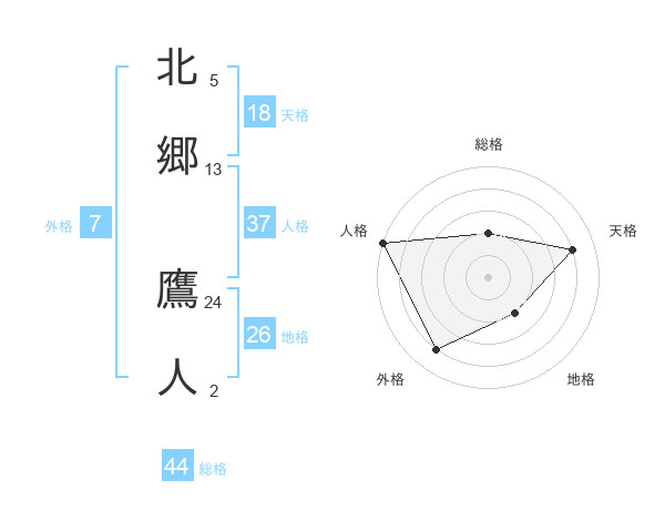 北郷 鷹人さんを姓名の画数から五運を鑑定