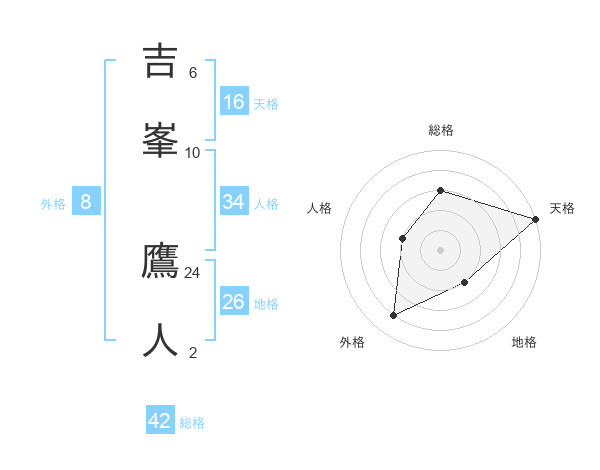 吉峯 鷹人さんの総格は42画の3点!