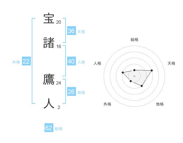 宝諸 鷹人さんの総格は62画の1点!