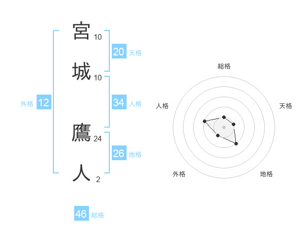 宮城 鷹人さんの総格は46画の1点!