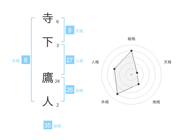 寺下 鷹人さんの総格は35画の4点!