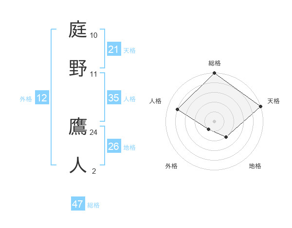 庭野 鷹人さんを姓名の画数から五運を鑑定