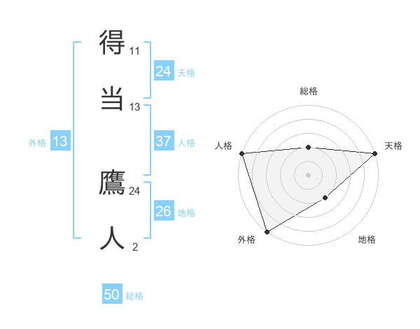 得当 鷹人さんの天格は24画の5点!