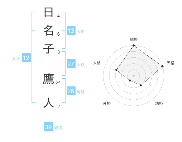 日名子 鷹人さんを姓名の画数から五運を鑑定