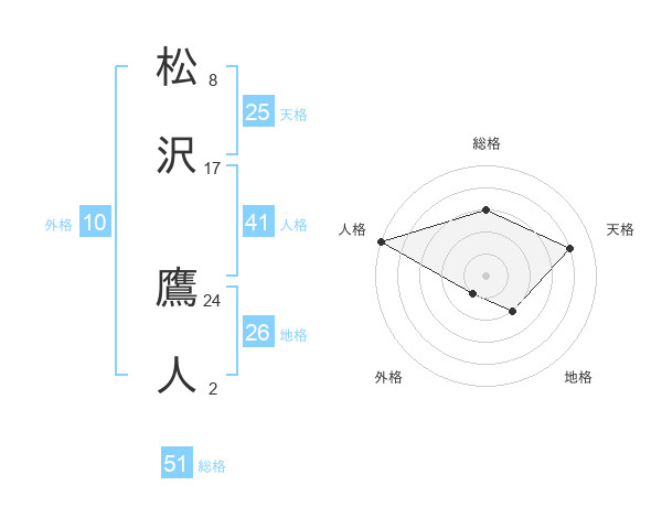 松沢 鷹人さんを姓名の画数から五運を鑑定