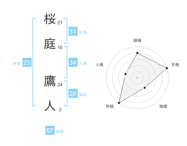 桜庭 鷹人さんを姓名の画数から五運を鑑定