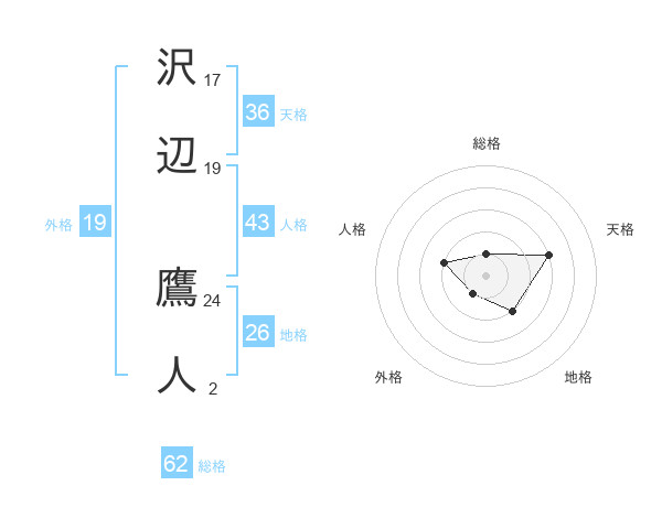 沢辺 鷹人さんを姓名の画数から五運を鑑定