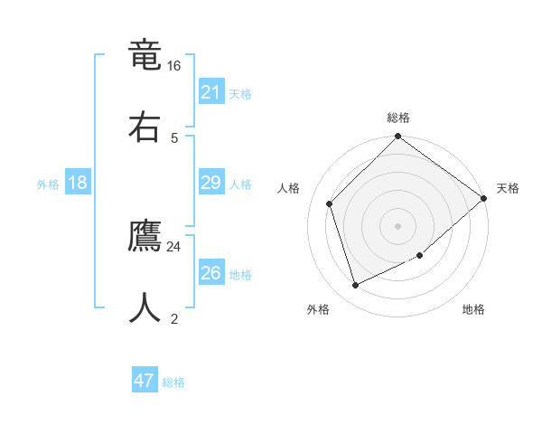竜右 鷹人さんを姓名の画数から五運を鑑定