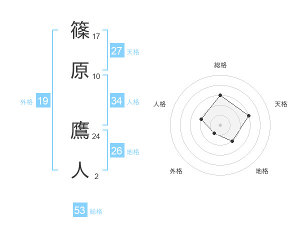 篠原 鷹人さんの総格は53画の3点!