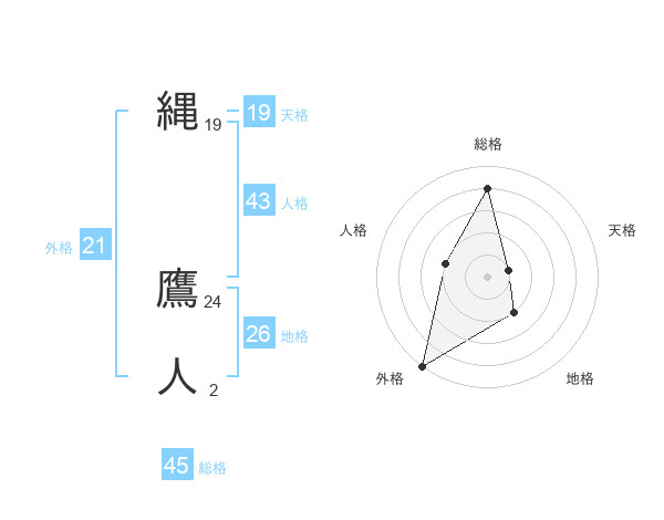 縄 鷹人さんを姓名の画数から五運を鑑定