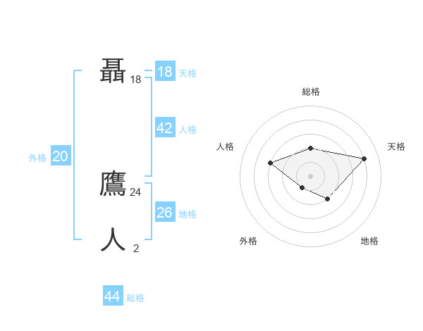 聶 鷹人さんを姓名の画数から五運を鑑定
