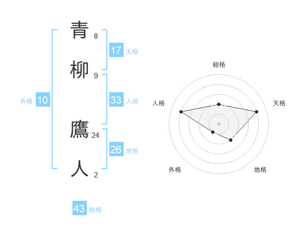 青柳 鷹人さんを姓名の画数から五運を鑑定