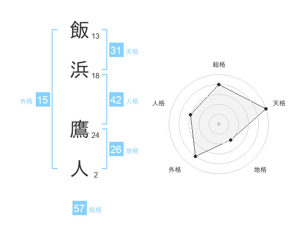 飯浜 鷹人さんを姓名の画数から五運を鑑定