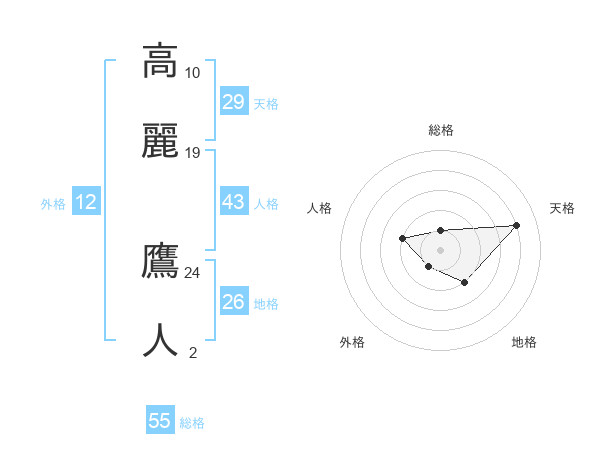 高麗 鷹人さんの総格は55画の1点!