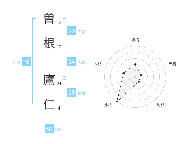 曽根 鷹仁さんの総格は50画の2点!