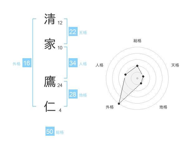 清家 鷹仁さんの総格は50画の2点