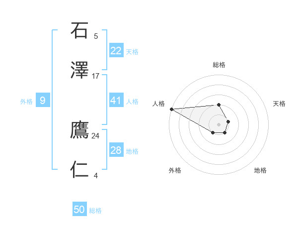 石澤 鷹仁さんの総格は50画の2点!