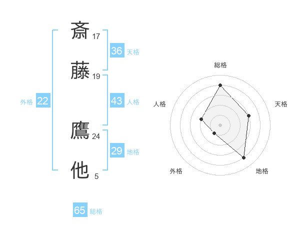 斎藤 鷹他さんを姓名の画数から五運を鑑定