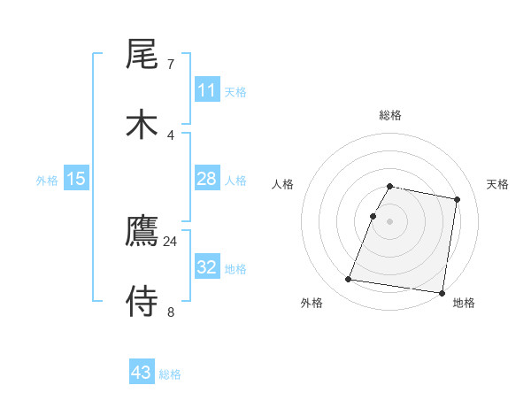 尾木 鷹侍さんを姓名の画数から五運を鑑定