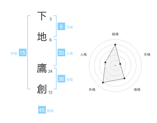 下地 鷹創さんの総格は45画の4点!