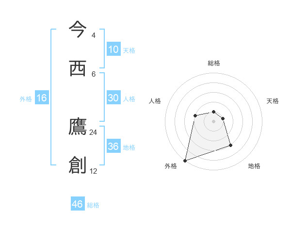今西 鷹創さんを姓名の画数から五運を鑑定
