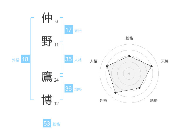 仲野 鷹博さんを姓名の画数から五運を鑑定