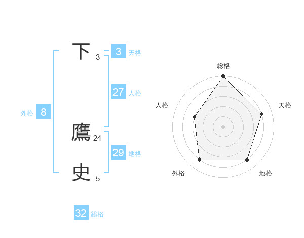 下 鷹史さんの総格は32画の5点!
