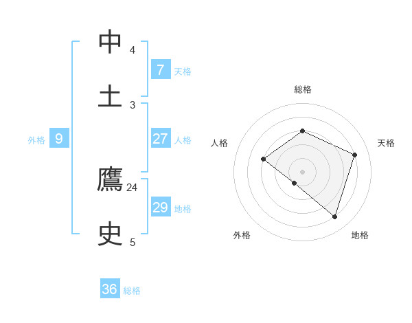 中土 鷹史さんを姓名の画数から五運を鑑定