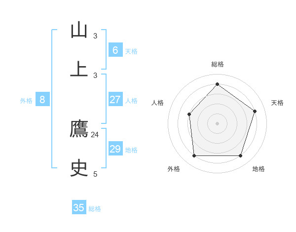山上 鷹史さんを姓名の画数から五運を鑑定