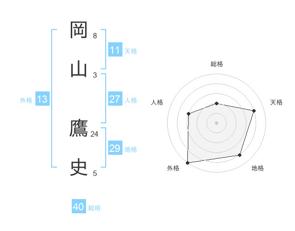 岡山 鷹史さんの天格は11画の4点!