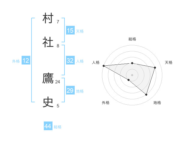 村社 鷹史さんの総格は44画の2点!