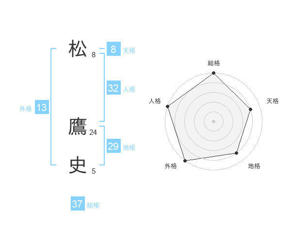 松 鷹史さんの総格は37画の5点!