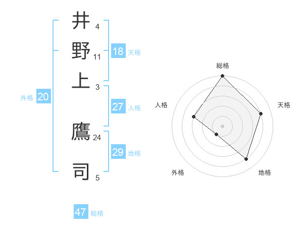 井野上 鷹司さんの総格は47画の5点!