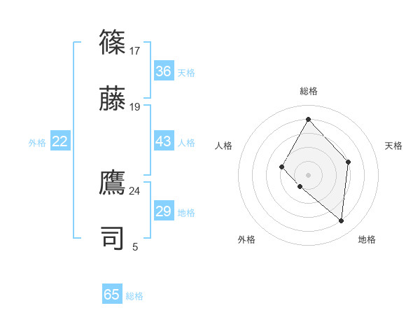 篠藤 鷹司さんを姓名の画数から五運を鑑定