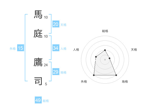 馬庭 鷹司さんの総格は49画の2点!