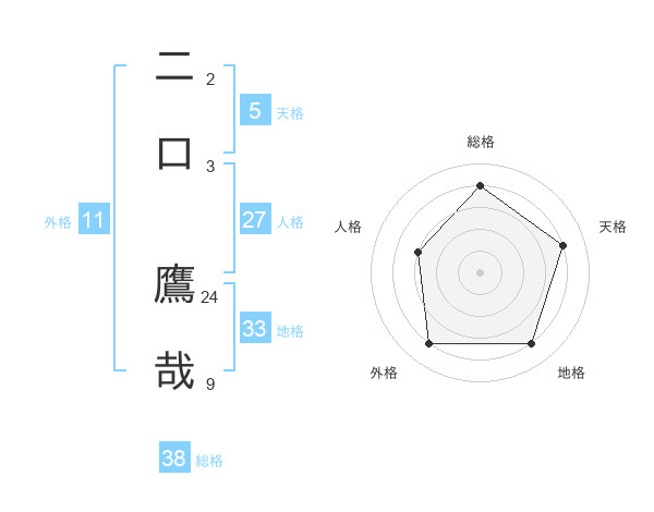 二口 鷹哉さんの外格は11画の4点!