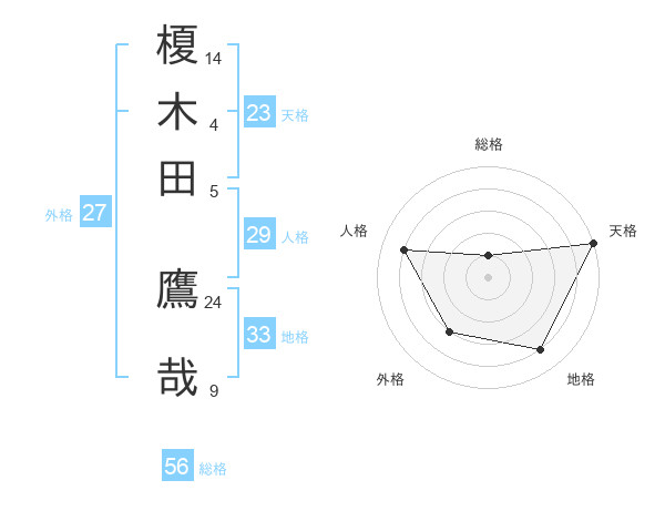榎木田 鷹哉さんを姓名の画数から五運を鑑定