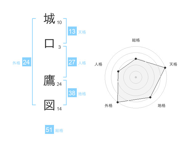 城口 鷹図さんを姓名の画数から五運を鑑定