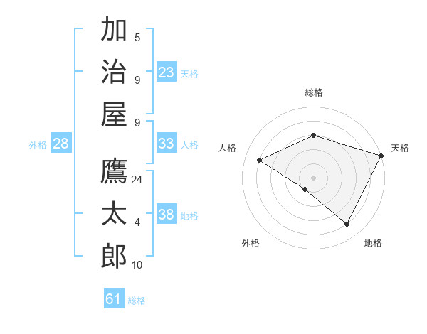 加治屋 鷹太郎さんを姓名の画数から五運を鑑定