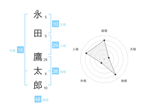 永田 鷹太郎さんを姓名の画数から五運を鑑定
