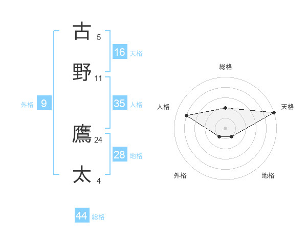 古野 鷹太さんを姓名の画数から五運を鑑定
