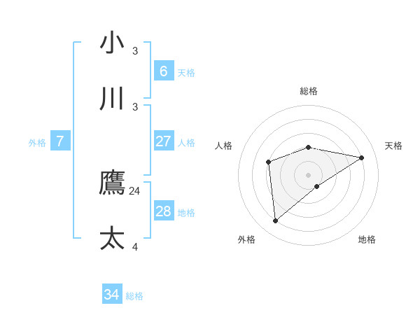 小川 鷹太さんを姓名の画数から五運を鑑定