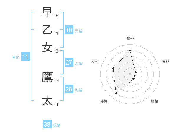 早乙女 鷹太さんを姓名の画数から五運を鑑定