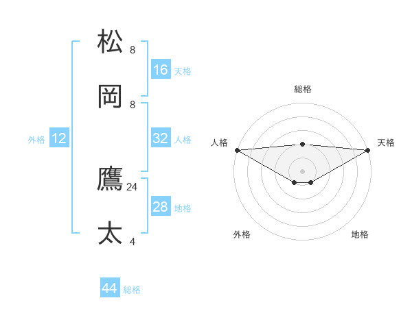 松岡 鷹太さんの総格は44画の2点!