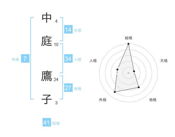 中庭 鷹子さんの総格は41画の5点!