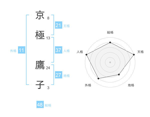 京極 鷹子さんを姓名の画数から五運を鑑定