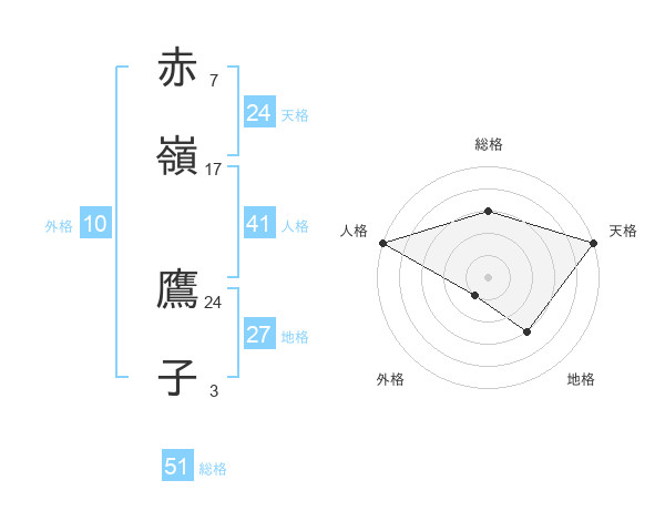 本サイトの鑑定結果の正当性は保証しません。鑑定結果は参考程度にお読みください。実際の名づけにご利用される場合は、姓名判断についてご自身でよくお調べください。