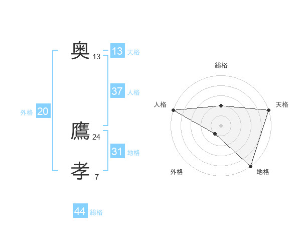 奥 鷹孝さんの総格は44画の2点!